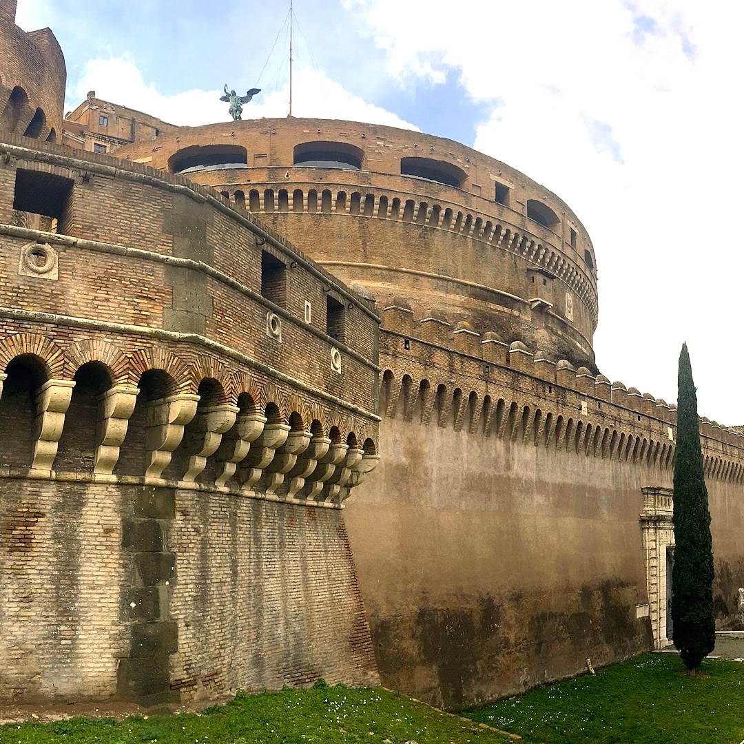 Chi controllava Castel Sant’Angelo controllava l’intera città, quindi durante il Medioevo ed il Rinascimento quel poco che rimaneva delle strutture originali del Mausoleo romano venne inglobato da nuove architetture difensive che ne fecero una fortezza inespugnabile e allo stesso tempo una splendida residenza papale decorata dai migliori artisti dell’epoca, dove più volte i papi si rifugiarono durante gli assedi, incluso quello dei Lanzichenecchi del 1527. La Sala sepolcrale fu trasformata in casamatta difesa da cannoni.