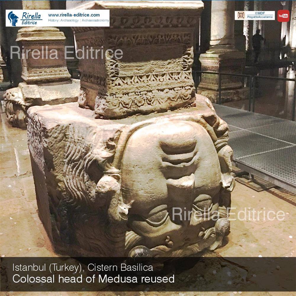 The Basilica Cistern measures 140 x 70 meters and has a total of 336 columns about 9 meters high, with Doric or Corinthian capitals and shafts made of marble or granite. There are fragments of architraves which were shaped to transform them into columns.