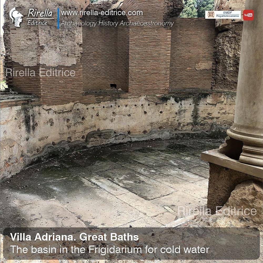 The Frigidarium was the room for cold baths, with two large water basins once revetted with white marble.