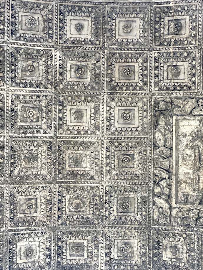 All’interno del fornice si vedono due grandi bassorilievi che raffigurano Traiano accolto dalla Triade Capitolina oppure Traiano nel Foro Boario, e per la loro alta qualità artistica sono stati attribuiti all’anonimo scultore della Colonna Traiana, il “Maestro delle imprese di Traiano“.