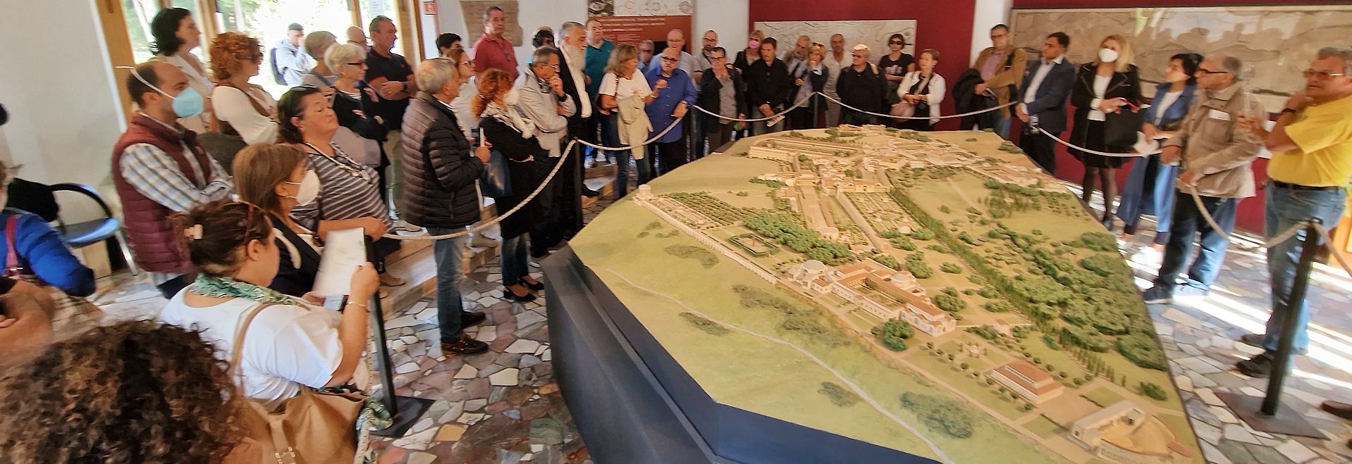 Guida d’eccezione la nostra socia Marina De Franceschini: archeologa e ricercatrice appassionata e dall’entusiasmo coinvolgente, Marina ha dedicato tanta parte dei suoi studi a questa costruzione di età imperiale, «un ricco complesso di edifici realizzati gradualmente (II secolo d.C.) ed estesi su una vasta area, che doveva coprire circa 120 ettari (per fare un confronto gli scavi di Pompei coprono un’area di 66 ettari, di cui circa 50 scavati), in una zona ricca di fonti d'acqua a pochi chilometri dal centro abitato di Tibur e 17 miglia romane dall’Urbs».