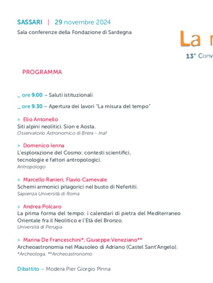 Presentation at the 13th International Archaeoastronomy conference in Sardinia «The Measurement of Time»