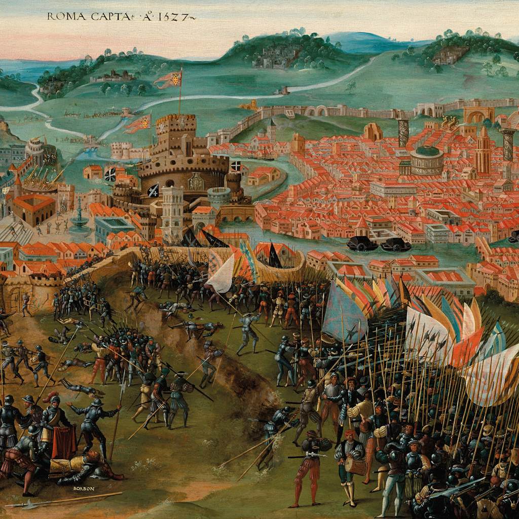 I Lanzichenecchi erano le feroci fanterie mercenarie tedesche che si avventarono sulla città comandate da Carlo III di Borbone per conto di Carlo V di Spagna.
