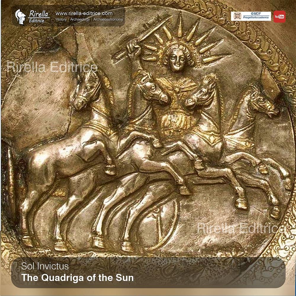 Emperor Hadrian was depicted as Sol Invictus driving the Quadriga of the Sun, a bronze sculpture that appears to have atop his Mausoleum, now the Castel Sant'Angelo in Rome, as we explain in our book «Castel Sant'Angelo. Mausoleum of Hadrian. Architecture and Light» (also Englsh edition), which you can purchase on the Rirella Editrice website.