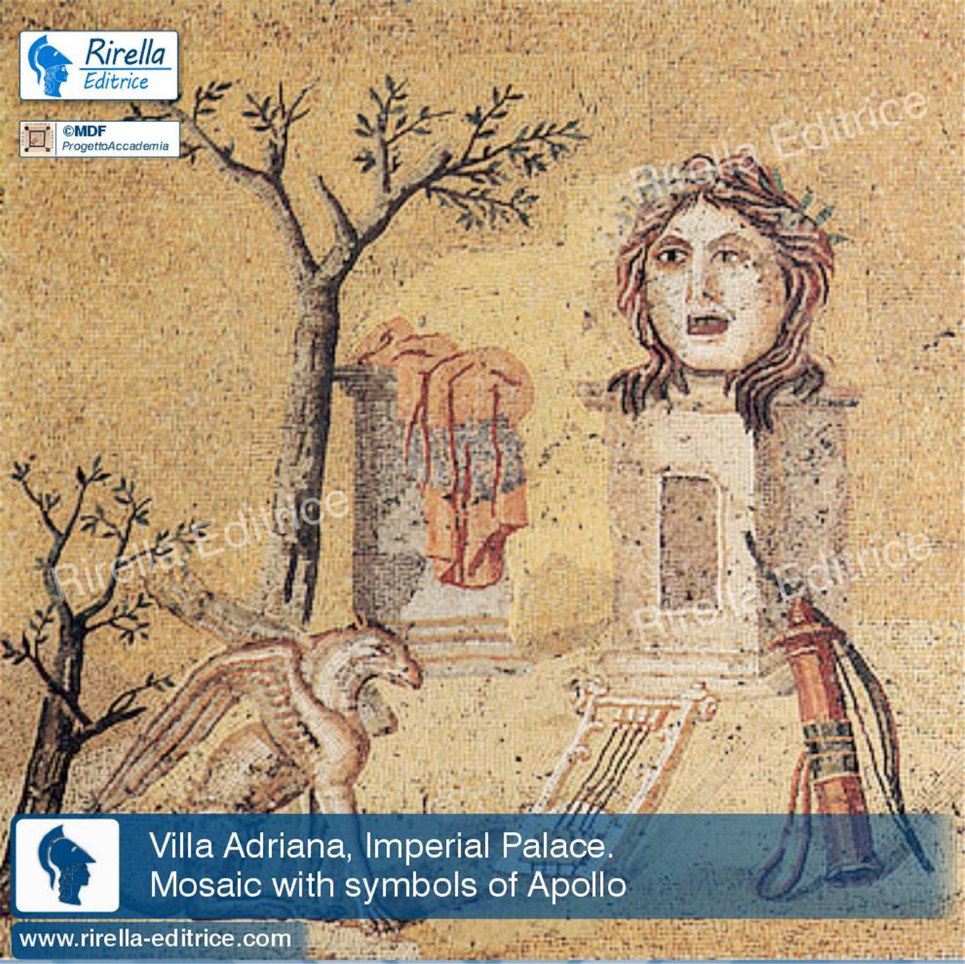 ✅ Two mosaic panels have the symbols of Apollo and two have the symbols of Dionysus. In the first one we see a scenic mask and the symbols of Apollo: a griffin, the lyre and the quiver with arrows. in the second there are four scenic masks and again the lyre of Apollo.