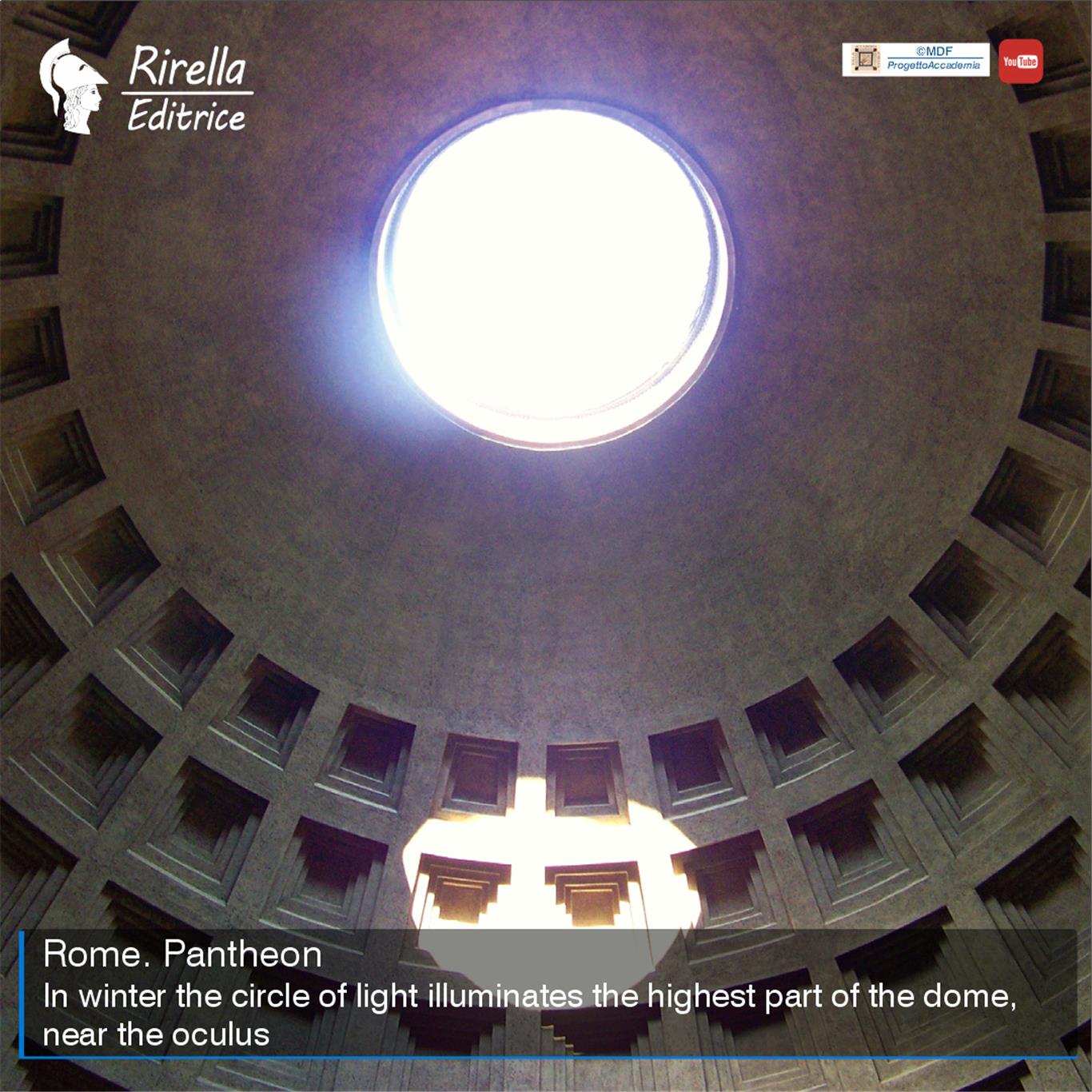 The real turning point came in 1991, when the Italian astronomer Aldo Tavolaro discovered that the Pantheon functioned as a large seasonal sundial: «It is possible to determine the dates of the year by observing the position of the spot of light at astronomical noon [...] If it is winter, the oval of light never descends below the cornice, if it is summer it descends to illuminate the floor of the temple».
