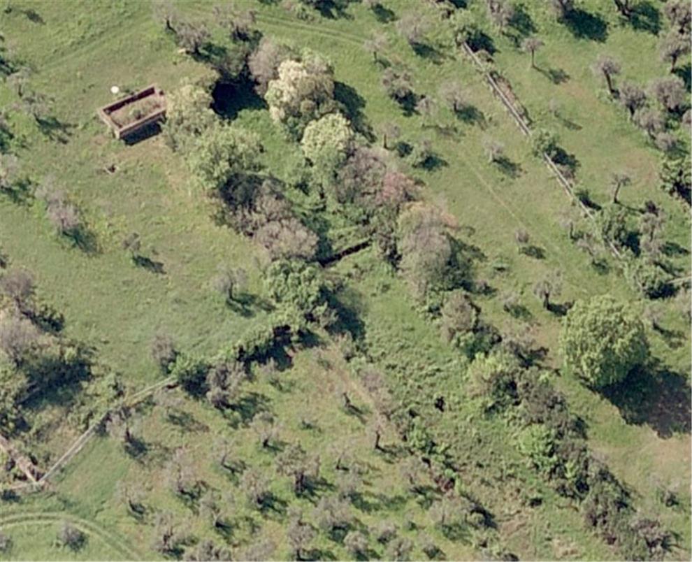 In alto a sinistra sopra la grotta è la cisterna rettangolare F con rivestimento impermeabile in cocciopesto, che alimentava la fontana dello speco E.