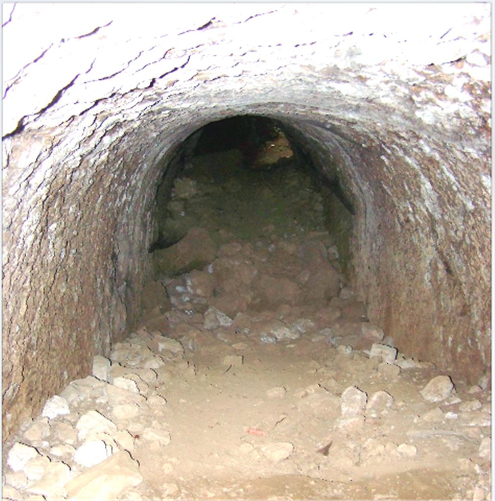 Una delle gallerie sotterranee degli Inferi rivestita con finte rocce