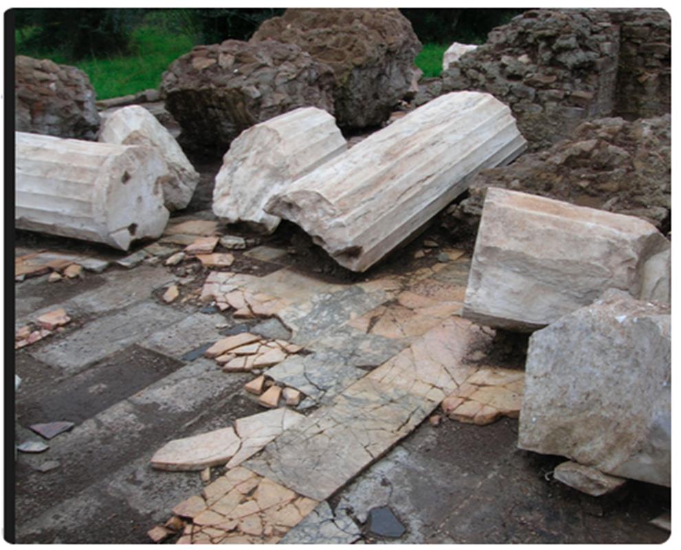 It has always been covered by vegetation until the excavations of Patrizio Pensabene, which started in 2004. They found columns, architectural marbles and opus sectile floors.