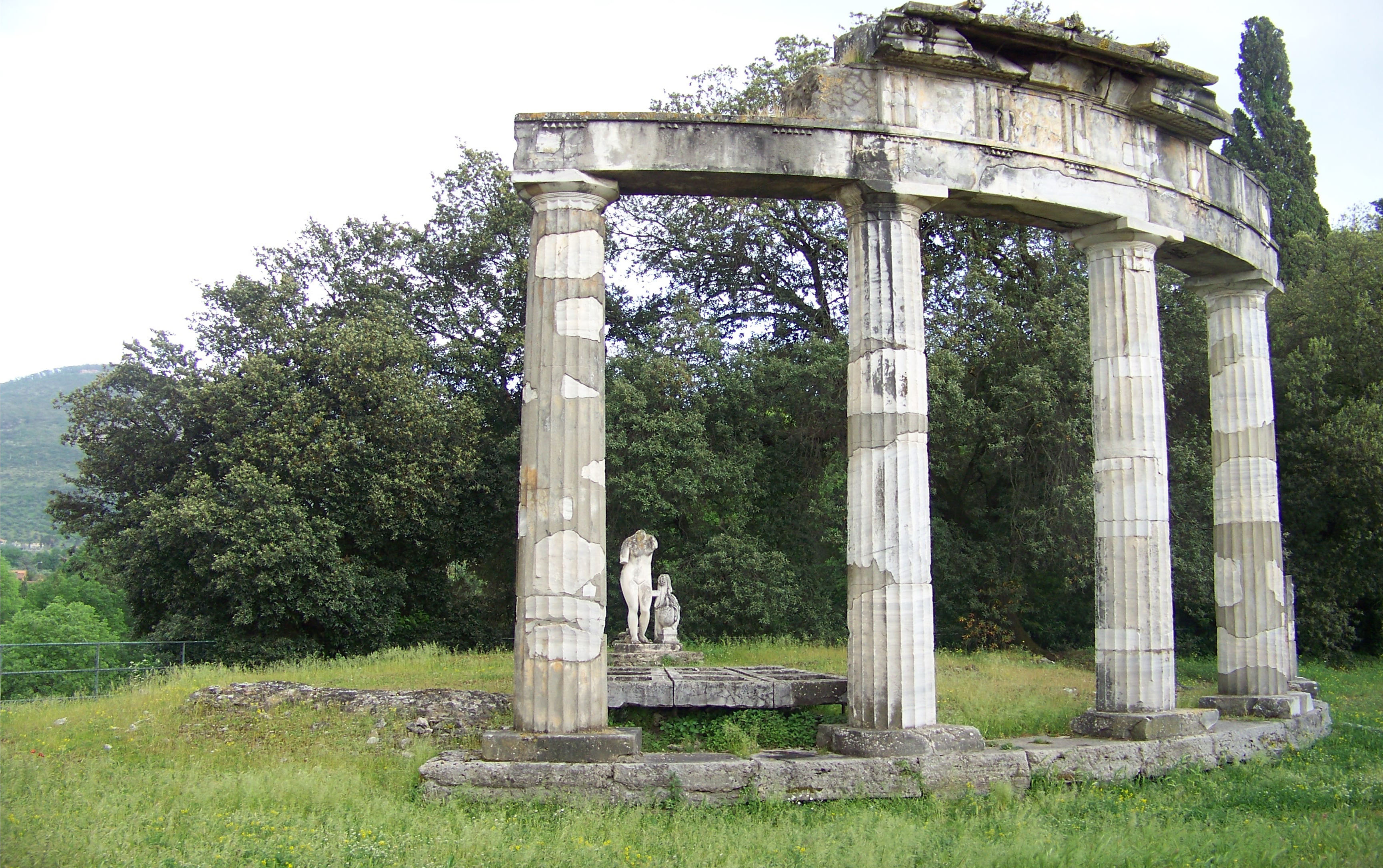 In ogni caso il Tempietto era un accesso monumentale e scenografico sul versante orientale della Villa. Era abbellito da fontane e giochi d’acqua, onnipresenti a Villa Adriana proprio come avviene oggi nella Villa d’Este di Tivoli.