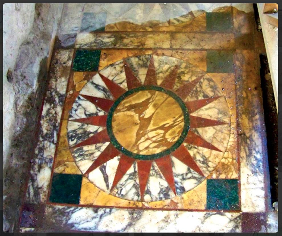 This in fact was the emperor's private thermal plant, which belonged to the Imperial Residence. The purple color dominates in the floors and frescoes, alluding to the purple of the imperial robes.