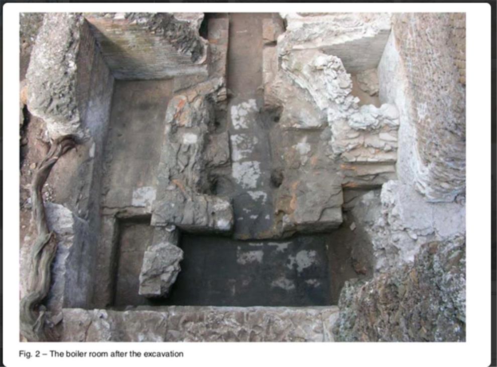 In rooms 24, 26 and 27 was the Caldarium, with small basins for hot water. Recent excavations have identified in roomPT28 the traces of a boiler for heating water (also known as a samovar).