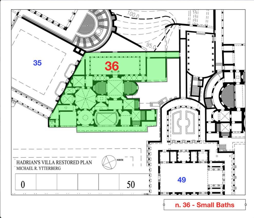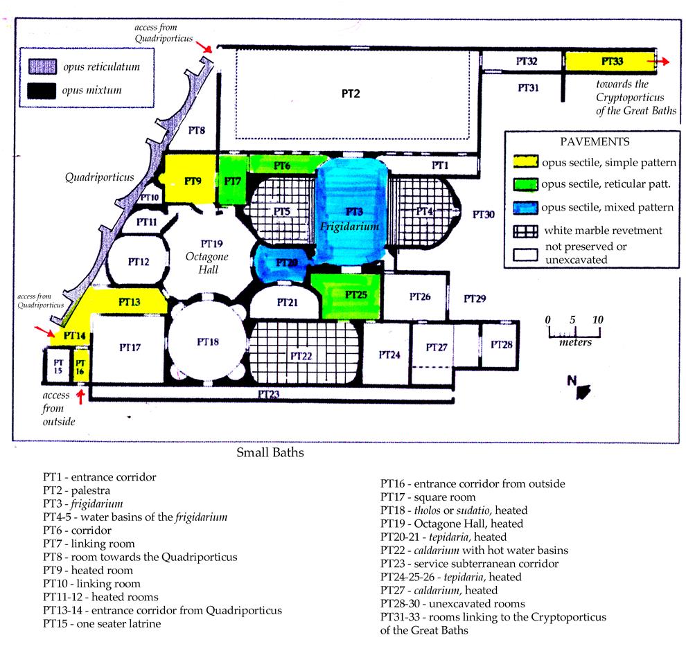 First of all, the large circular Sudatio PT18, and then a series of heated rooms, such as the Tepidaria in PT20, 21 and 25.