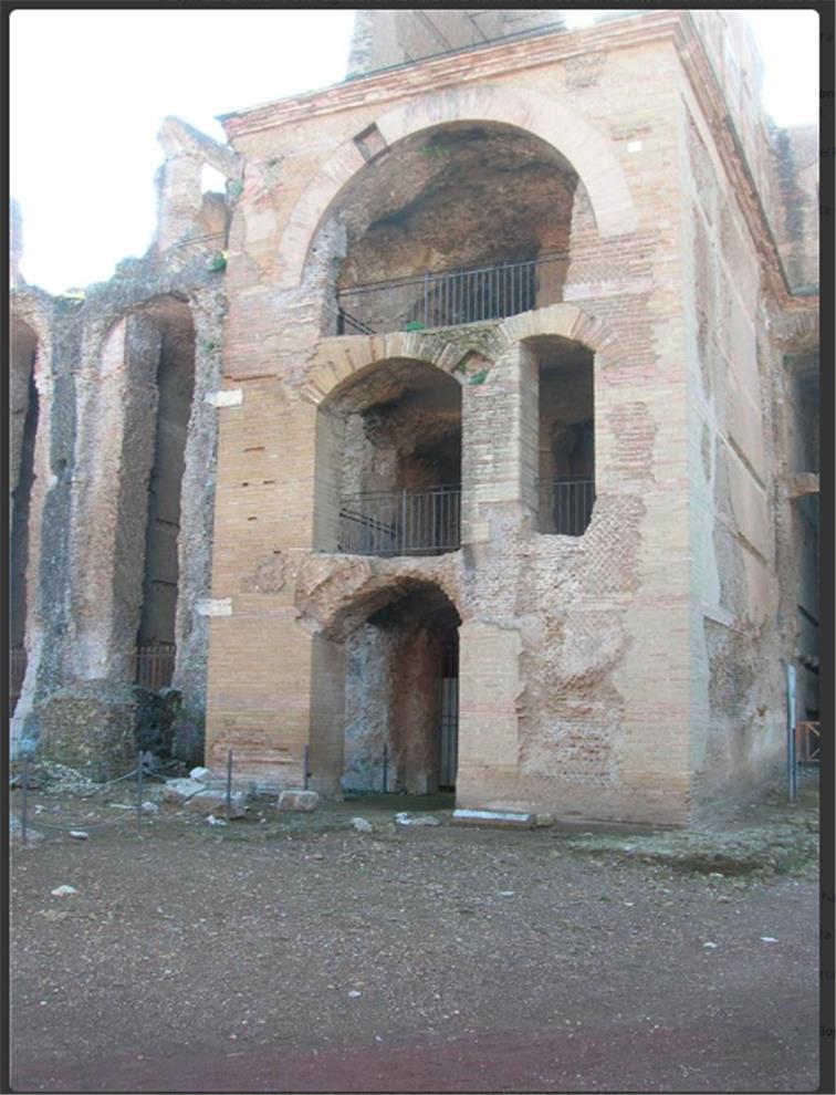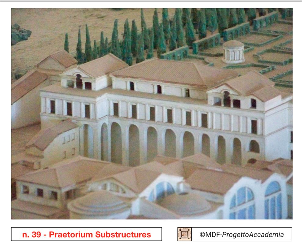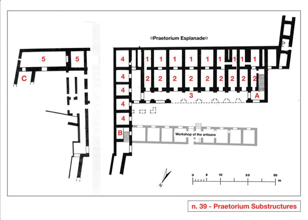 The Substructures also served as retaining wall of the cliff and the tufa bank of the Praetorium Esplanade, which is located about 15 m higher up. It also supported the Praetorium Panoramic Pavilion n. 40.