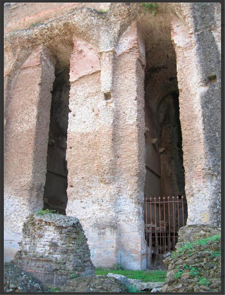 These imposing substructures, similar to the Hundred Chambers, served to embank the rocky cliff on the north side of the Praetorium Esplanade and to support the Praetorium Panoramic Pavilion which opened onto that Esplanade.