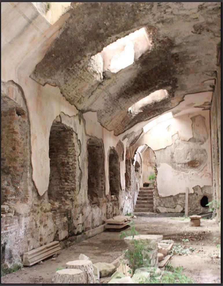 On the side towards the embankment is the large Cryptoporticus TI22; on its rampant vault there are still some frescoes and traces of color can be seen. It was depicted in an engraving by Giovan Battista Piranesi.
