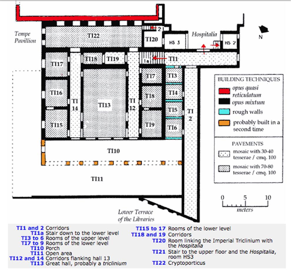 SEE: Marina De Franceschini, Villa Adriana. Mosaici, pavimenti, edifici, 1991, Imperial Triclinium pp. 55-72 amd 367-373. On Hospitalia and Imperial Triclinium as a whole: pp. 374-376).