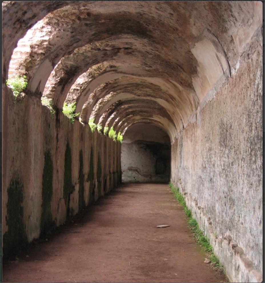 It consisted of four corridors PE29-32: the floor is not visible, but traces of the frescoes and several signatures of ancient visitors can still be seen on the walls.