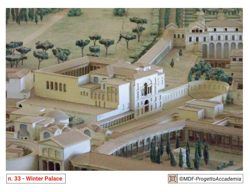 Therefore the Winter Palace was the private residence of the Emperor and was part of the Imperial Residence. We have seen that the Building with Three Exedras was the atrium of this complex, the Garden Stadium was the inner garden; a thermal plant could not be missing, which in fact was in the Small Baths.