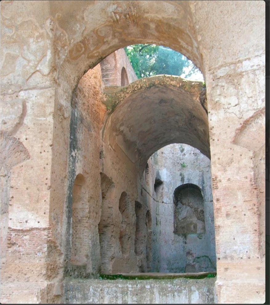 The main hall is the semicircular Ca2, covered by an half umbrella dome, with alternatively concave and flat triangles, once revetted with mosaics.
