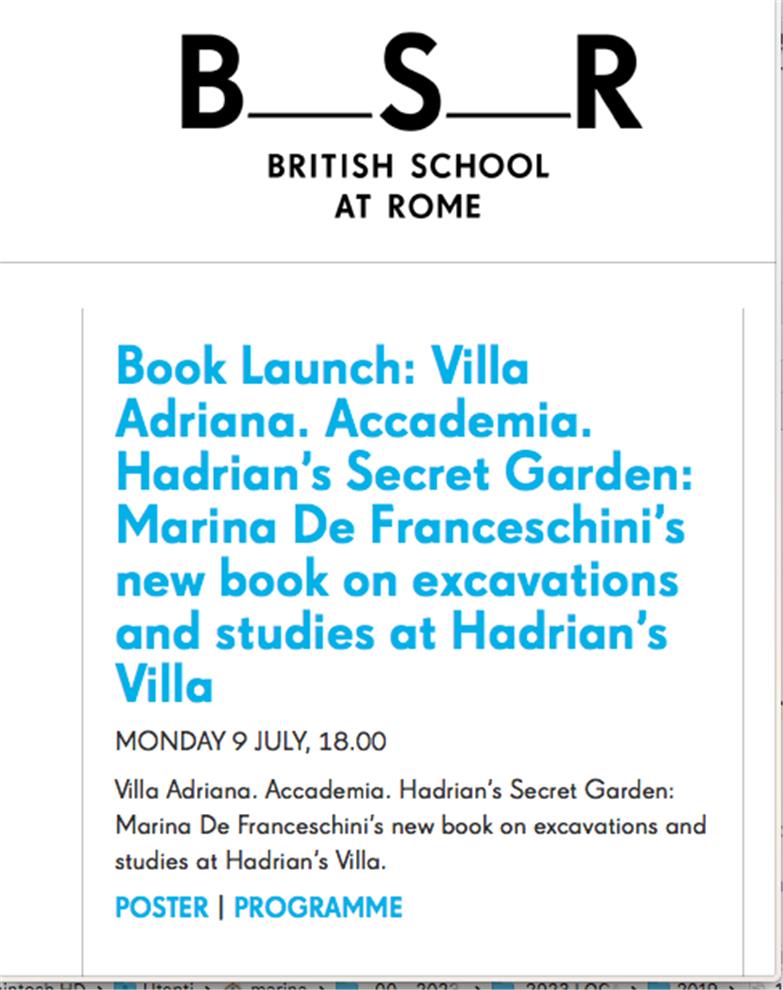 Presentation of the book Villa Adriana. Accademia, Hadrian's Secret Garden