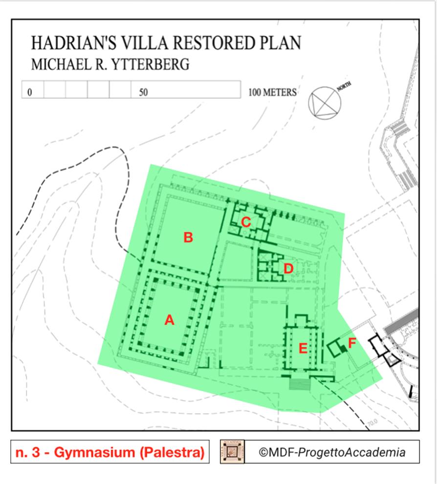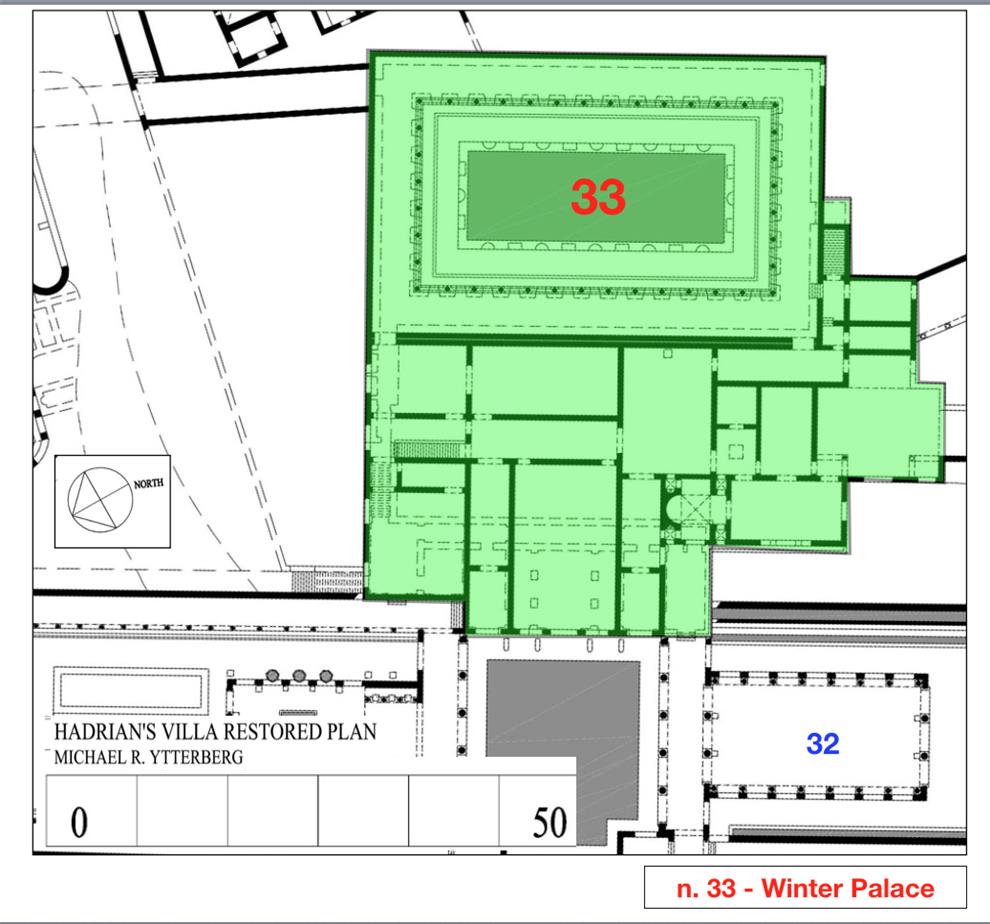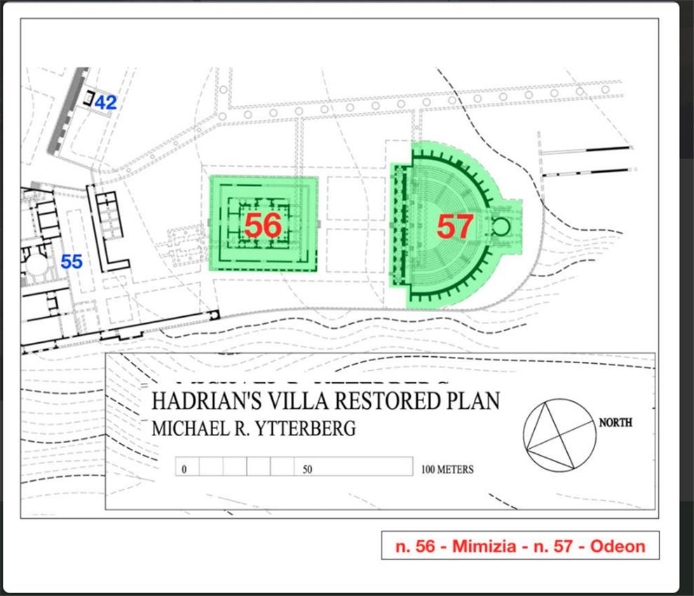 The plans are taken from the General Restored Plan of Hadrian's Villa by the american architect Michael Ytterberg, who for many years studied Hadrian's Villa (with his kind permission).